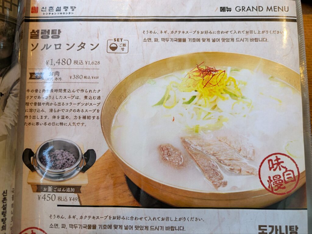 以前も行った新大久保のシンチョンソルロンタンのお店に再び行ってきました💛