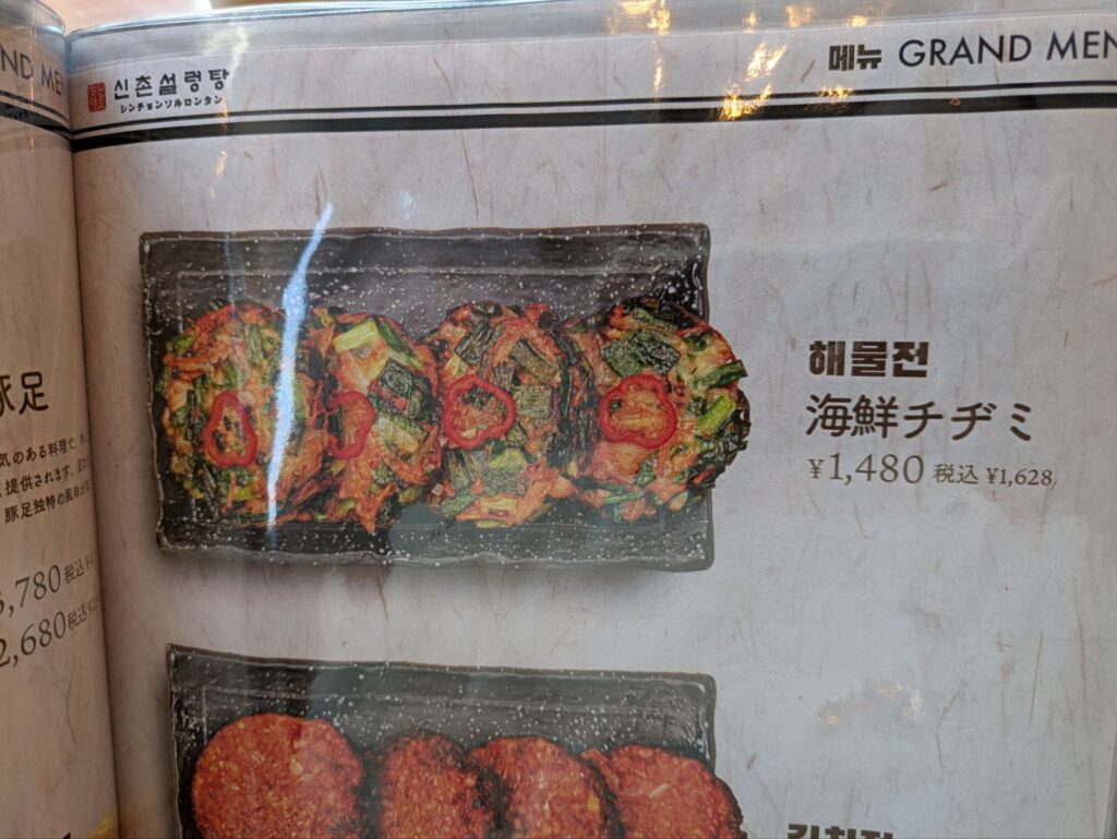 前回はソルロンタン2つ頼んで、チヂミとか頼めば良かった。って思ったので、今回はチヂミを頼んだ!