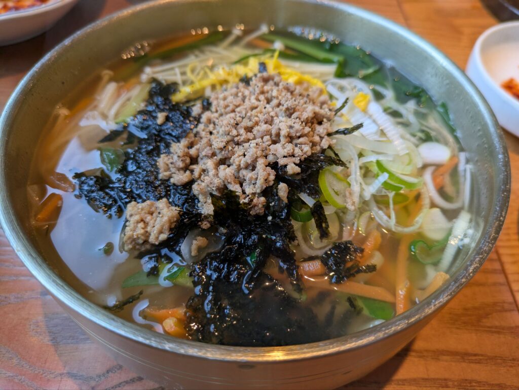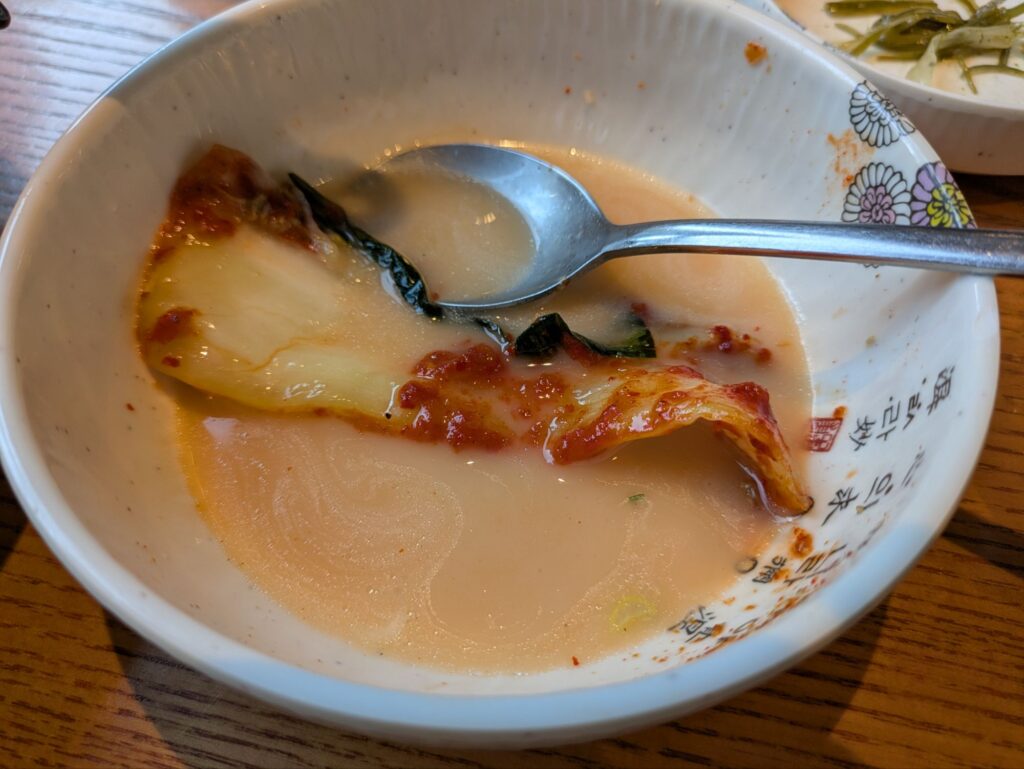 味はシンプルだけど、塩、胡椒、キムチ入れたりしてお好みで味変できる。それがうまい!